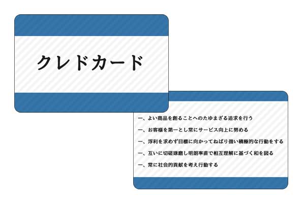 ここ数年、企業では信条や経営理念をより具体的な行動指針に落とし込み、簡潔にまとめたものを「クレドカード」として印刷して、全従業員に配布しているケースが見られるようになりました。