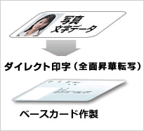 まず初めに個人情報以外の共通デザイン部分(背景のデザイン・学校や会社のロゴなど)を印刷したベースカードを作成し、その上に顔社員や名前などの可変情報をカードプリンターで直接印字していく作成方法です。