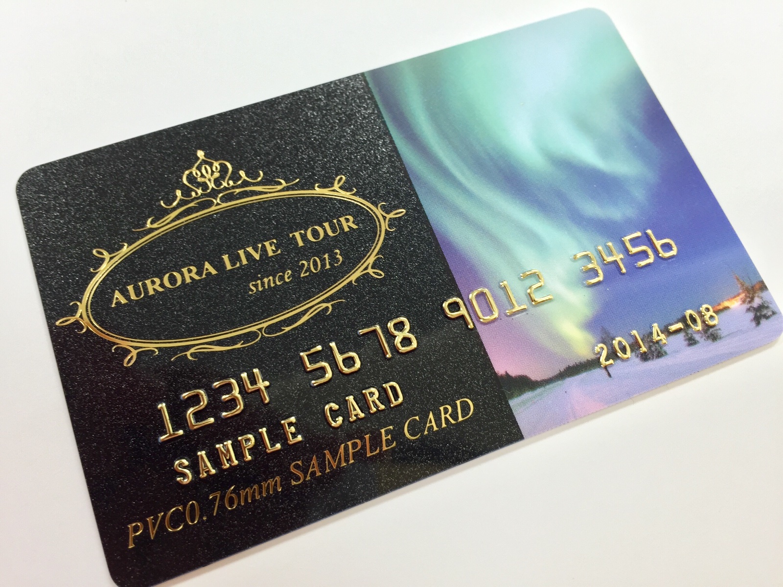 以下の画像は、ラメ加工を使用したプラスチックカードの印刷事例です。