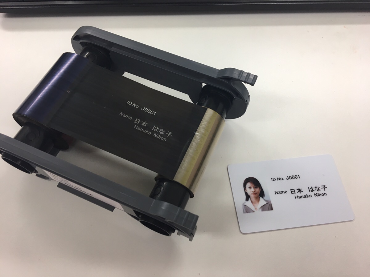 カード印刷の方法はさまざまですが、ダイレクト印字(昇華転写)を行った場合、以下の写真のようにプリンターのインクリボンに印字した個人情報が残ってしまいます。